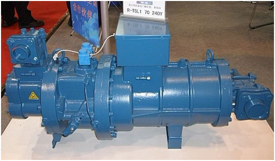 螺桿式壓縮機 是一種回轉(zhuǎn)式容積式壓縮機。它利用螺桿的齒槽容積和位置的變化來完成蒸氣的吸人、壓縮和排IqJ過程。無油螺桿壓縮機在本世紀(jì)三十年代問世,主要用于壓縮空氣。后來汽缸內(nèi)噴油的螺桿式壓縮機出現(xiàn),性能得到提高,噴油式螺桿壓縮機已是制冷壓縮機中主要機種之一。螺桿式壓縮機分為雙螺桿和單螺桿兩大類,雙螺桿壓縮機習(xí)慣上稱為螺桿式壓縮機。